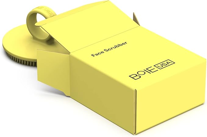 Boie USA Face Scrubber - Handheld Facial Tool, Deep Cleansing Exfoliating Facial Brush. Fights Acne with Gentle, Silicone-Like Bristles, Long Lasting, & Hypoallergenic (Yellow)