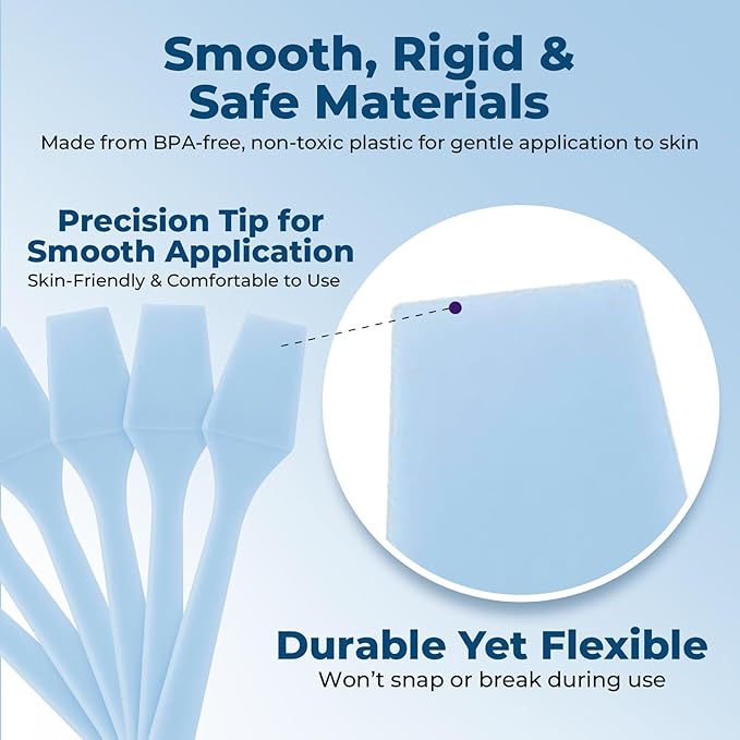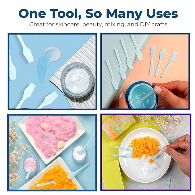 • DIY Skincare Creations: Our versatile tiny spatulas for cosmetics are the perfect skincare tools for mixing your homemade skincare concoctions, including face masks, creams, and more. Plus, use these disposable makeup applicators for sampling or applying products