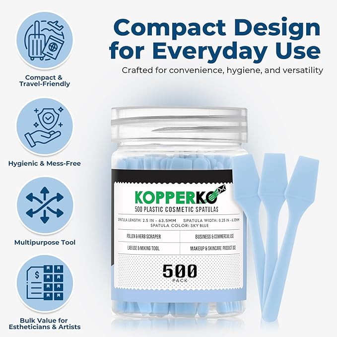 • Clean Out Your Containers: Maximize product use with our 500 pack of 0.25"x2.5" disposable makeup sample spatulas. Easily extract creams, lotions, or makeup from containers, even in tight spaces, without getting product under your nails