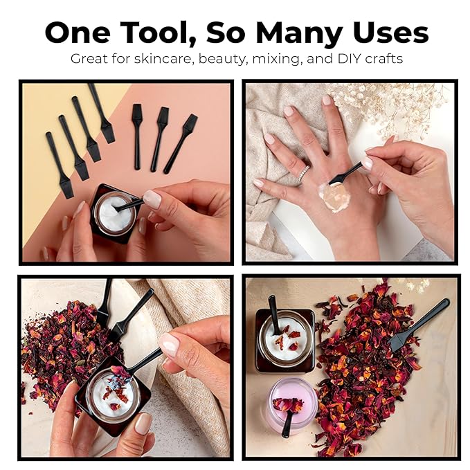 • DIY Skincare Creations: Our small spatulas for cosmetics are the perfect skincare tools for mixing your homemade skincare concoctions, including face masks, creams, and more. Plus, use these disposable makeup applicators for sampling or applying products
