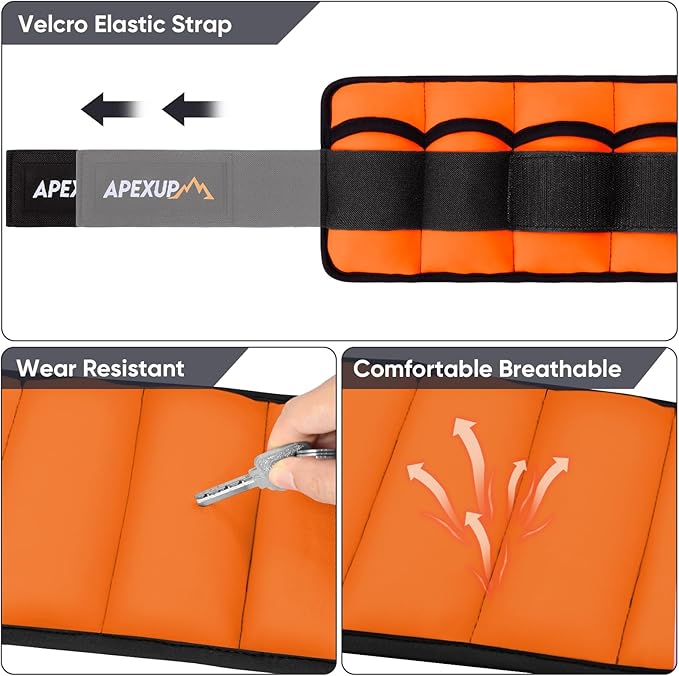 • [PREMIUM QUALITY] APEXUP adjustable ankle strength training weights are filled with iron sand to ensure a compact profile. The sleeve material of the ankle weights for men is soft and breathable, which will give you maximum comfort during workout.