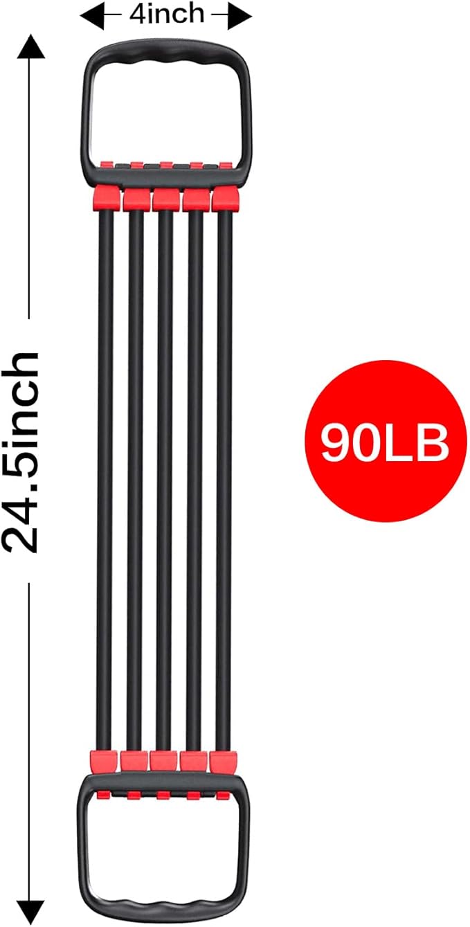 • Customizable Resistance Levels: With 6 removable rubber tubes, our chest exerciser allows you to adjust the resistance according to your fitness level. Whether you're a beginner or a professional athlete, this training set offers 5 different levels of resistance, ranging from 30 to 90 Lbs. This versatility ensures that you can continuously challenge and improve your chest, arm, leg, shoulder, and back muscles.