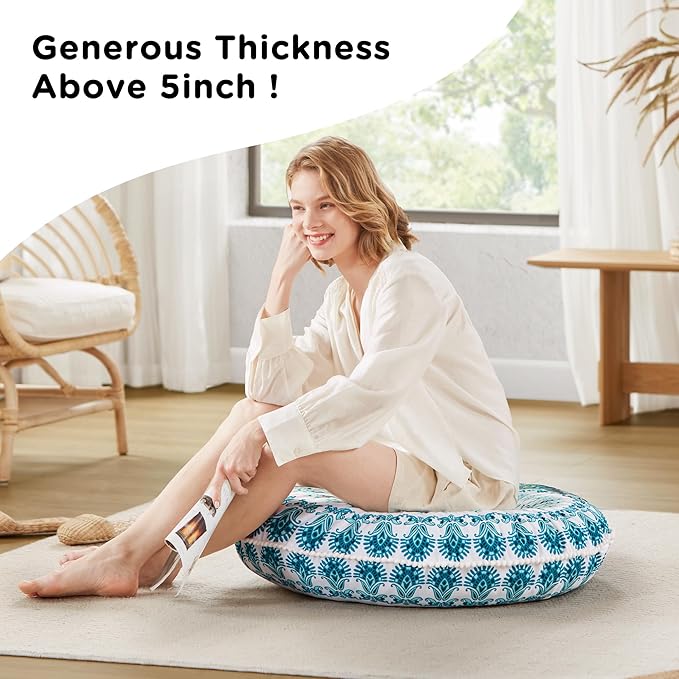 Codi Meditation Floor Pillow, Round Large Pillows Seating for Adults, Bohemian Mandala Circle Cushion for Outdoor Fireplace Yoga Living Room, 32 Inch, Memory Foam Added, Aqua