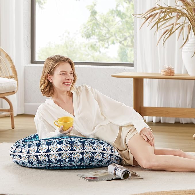 • BRIGHT UP YOUR HOME: Pick from our distinct color palette to brighten up your home decor. The round boho case is a gorgeous piece of mandala art, made with sensitive-safe fabric featuring cute white pom pom trim. Kids, Adults, even pets will love it. Machine washable cover to free your hands.