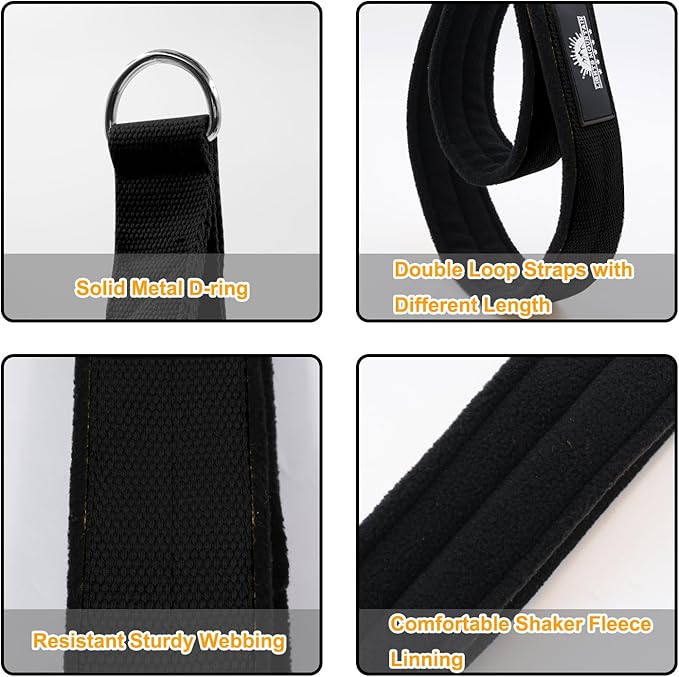 • 2 Loops in One: Double loop straps offer two rope length options to avoid the need for strap adjustment while exercising, allowing for quick maneuvering from leg to arm exercises on your pilates reformer. Short loop for hands and the long loop for legs.