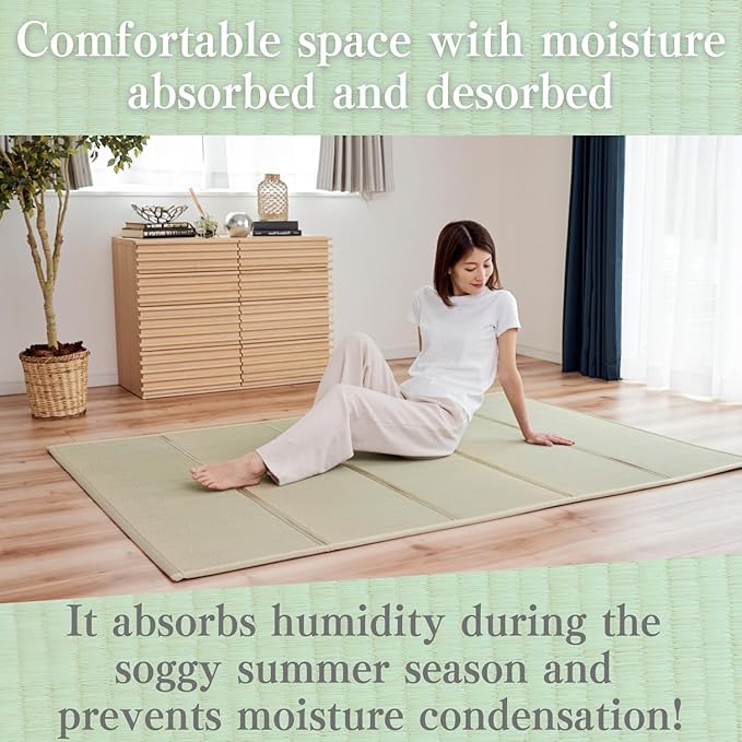 • ✅ Our tatami mat absorbs moisture, sweat and odor, leaving the air feeling clean and fresh. Its rush material provides natural humidity control and air purification.Comfortable space with moisture absorbed and desorbed.Igusa absorbs moisture 2.5 times better than cotton.Igusa is a natural air cleaner that adsorbs formaldehyde and nitrogen dioxide in your room and cleans the air.