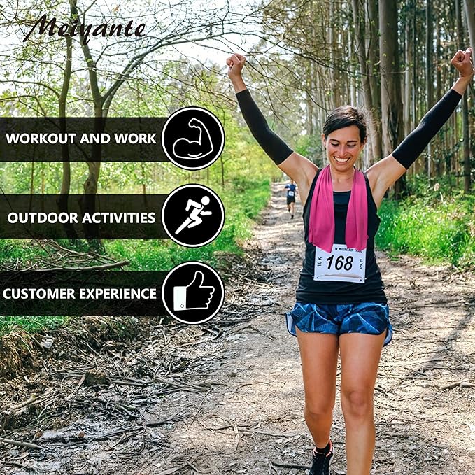 • ✅ INSTANT COOLING TOWEL – Our gym towels for working out are made with premium microfiber, offering UPF50+ sun protection and a lightweight, compact, and durable design. Unlike PVA towels that dry stiff, these cooling towels stay soft and flexible, keeping you cool for hours once wet. Ideal for runners, hikers, and outdoor enthusiasts who need long-lasting cooling relief. Perfect for workouts, hiking, and sports activities