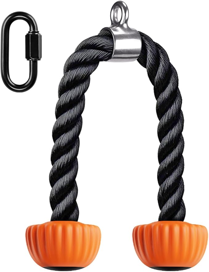 Kipika Tricep Rope, Cable Machine Attachments Pulley System Gym Pull Down Rope, Heavy Duty Nylon Rope with Soft Rubber Ends