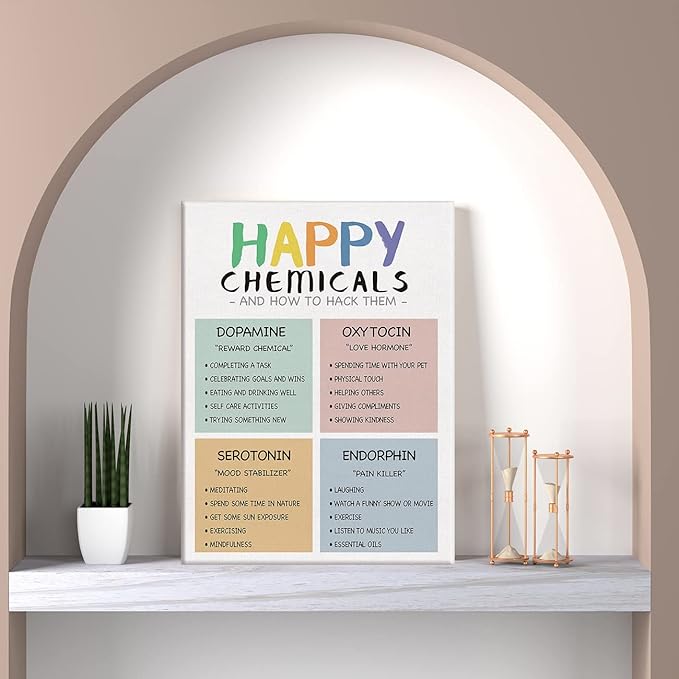 Positive Wall Art Mental Health Canvas Print Happiness Chemicals Poster Framed Artwork Painting for Counselor Therapy Office Home Wall & Tabletop Decor