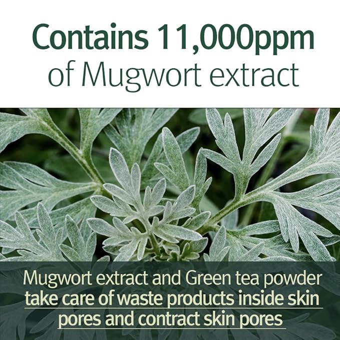 • INSTANT CLEAR & SMOOTHER SKIN – 11,000ppm of Mugwort Extract contained in the product cleanses every skin pores to completely remove old waste products, making refreshed and smoother skin. Mung Bean extract purifies the skin and gently cleanses every skin pores clean and fresh