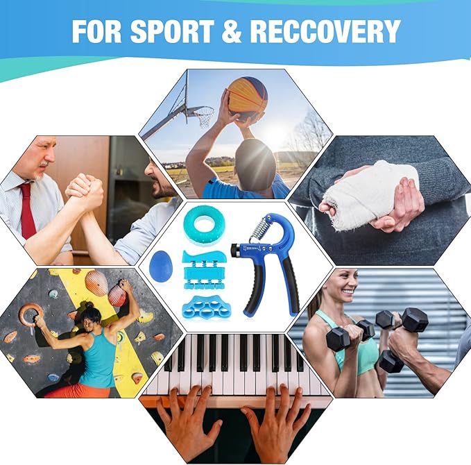 • 【Hand Grip Strengthener Forearm Grip Exerciser Kit - 5 Pack】: Contains Hand Grip Strengthener (11lbs~132lbs Adjustable), Finger Exerciser, Finger stretcher Resistance Band, Hand Strengthener Grip Ring and Stress Relief Grip Ball. Portable, you can put it in your pocket. Even in this fast-paced era, you can take time to exercise or release stress. Old School Fitness Style! You will like them.