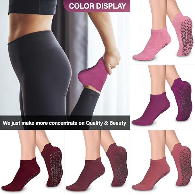 • ANTI-SLIP: Features non-slip sticky silicone grips with beautiful pattern on the bottom of the anti skid yoga socks. Those gripper socks can provide better stability & balance on the floor surface.