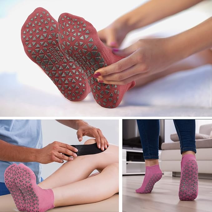 Non Slip Yoga Socks with Grips for Pilates, Ballet, Barre, Barefoot, Hospital Anti Skid Socks for Women and Men