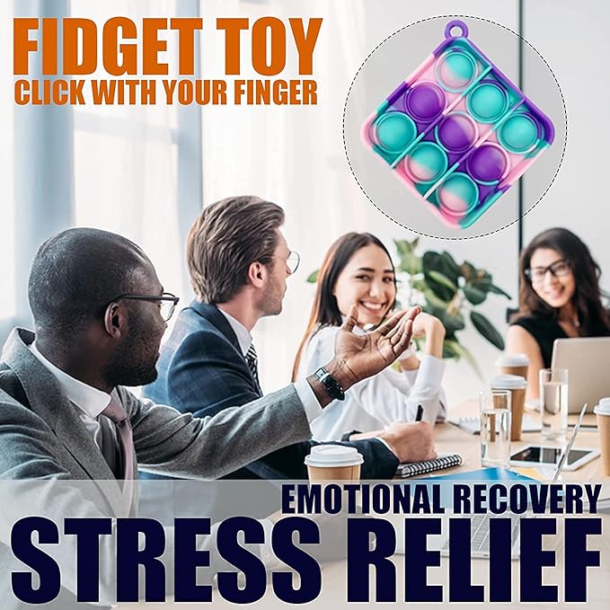 • 【Play It Whenever and Wherever You Want】: The fidget keychain bubble sensory toy is lightweight, durable, soft. You can use it as a key-chain and carry it with you all the time. Not only suitable for children, but also for adults, it helps to relieve anxiety and create a good atmosphere. When press the bubbles, the mini fidget toy will make a slight popping sound, when all the bubbles on the front are squeezed, then flip it over and start again. Give you endlessly fun.