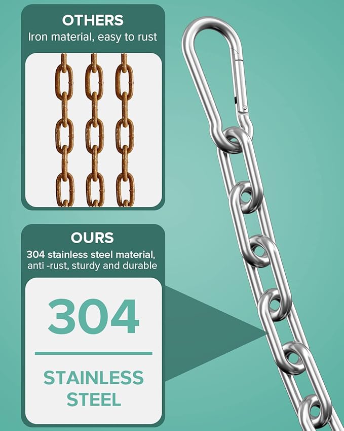 • 【High Quality Material】 Gym Cable Attachments Extension Chain is made of 304 stainless steel which has higher strength, super capability and high quality enhance anti-deformation and corrosion resistant performance, 23inch (60cm) in total length, 0.16 inch (4mm ) in thickness, strong and durable, no sharp edges, support 300LBS load capacity.
