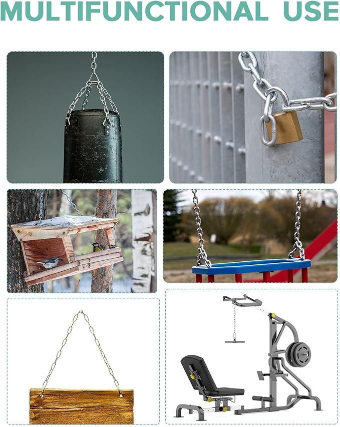 • 【Workout Chain】 This is an extension chain mainly for gym types of projects. You can connect this extension chain to your "fitness cable of exercise machine and any cable machine handles" with snap hooks.Fitness chain perfect for Pulley System, Home Gym and more.
