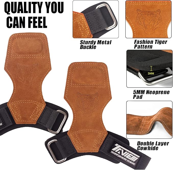 • PREMIUM COWHIDE PADDING: TAVIEW weight lifting wrist straps fits around any barbell and provides you with a firmer grip that prevents injuries. Our lifting wrist straps have cowhide padding that give you the security you need so you can lift heavier! These workout straps take the pressure off your palms so you can focus on your pull-ups and lift weights - making it the best gym straps for deadlifts. The premium material of our weight straps ensures that there no chafing, calluses, or slips!