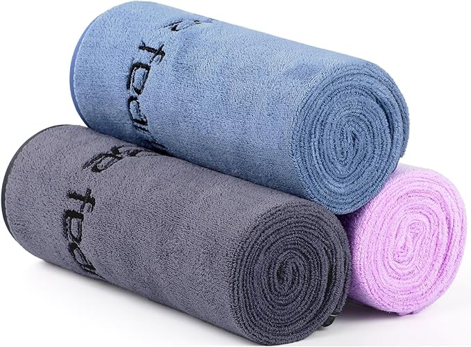 Microfiber Gym Towels Bigger Size Super Soft for Exercise Fitness, Sports, Workout, 380-GSM 15-Inch x 31-Inch Quick-Drying Towels (3 Pack, Grey+Blue+Purple)