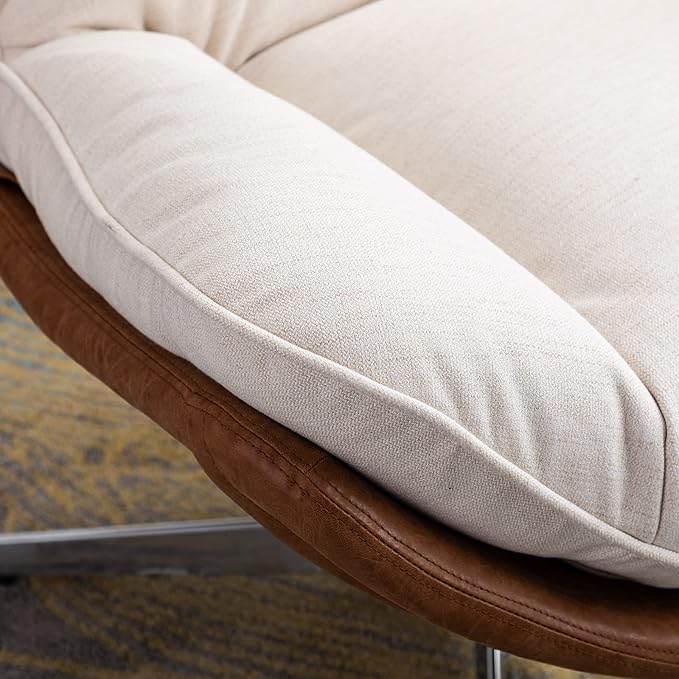 DUOMAY Swivel Accent Chair, Modern Linen Soft Foam Lounge Chair with High Back, Comfy Rocker Chair for Living Room Bedroom Reading Room Office, Tilt & Swivel, Chrome Base, Beige
