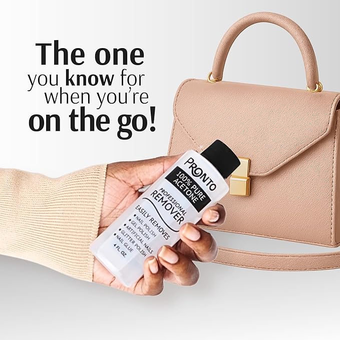 • PREMIUM QUALITY PRODUCT: Our Pronto fingernail polish remover is proudly made in USA, using 100% pure acetone to effectively and efficiently remove all types of manicure and pedicure. Products are sealed, and are available in 4, 8 and 16 Fluid Ounces.