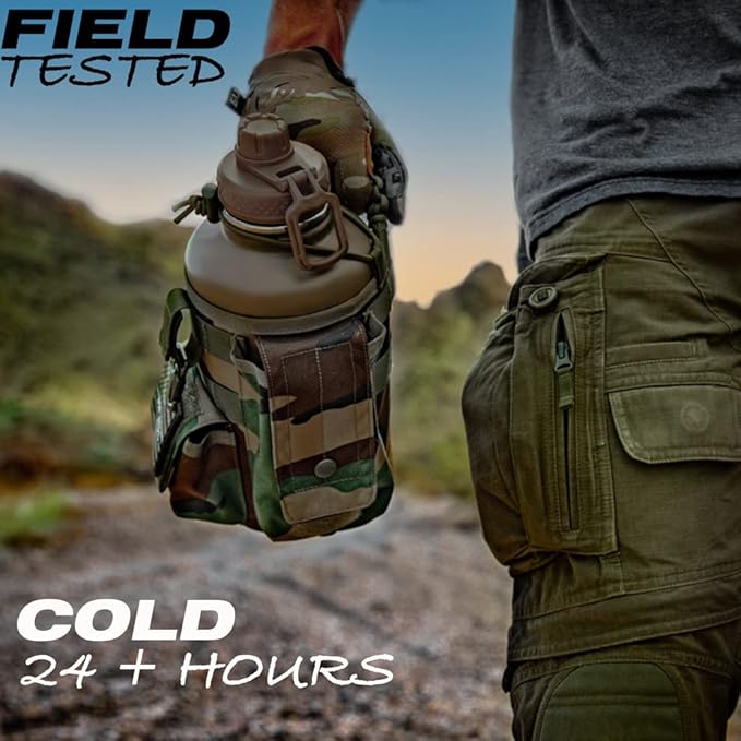 • DURABLE AND RUGGED - Made from high quality double-wall stainless steel and military grade fabrics, making this a necessary piece of your go-to gear and equipment for hiking, camping, hunting, work, or the gym.
