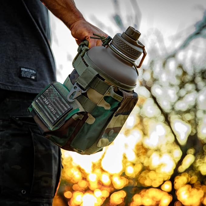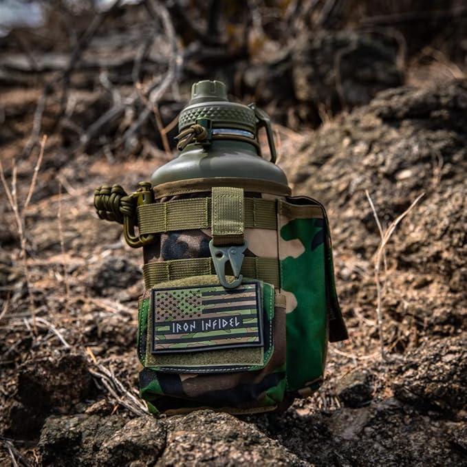 • PATENT PENDING DESIGN - This unique and original design is the only one of its kind. Iron Infidel created and patented this original design with our military, law enforcement, first responders , and hard working patriots in mind. These men and women put in long, hard days and a petite water bottle just won't cut it. Stay hydrated all throughout your hardest days, and you might as well do it with a bottle that looks cool. Grab the 21st century replacement of your old military canteen.