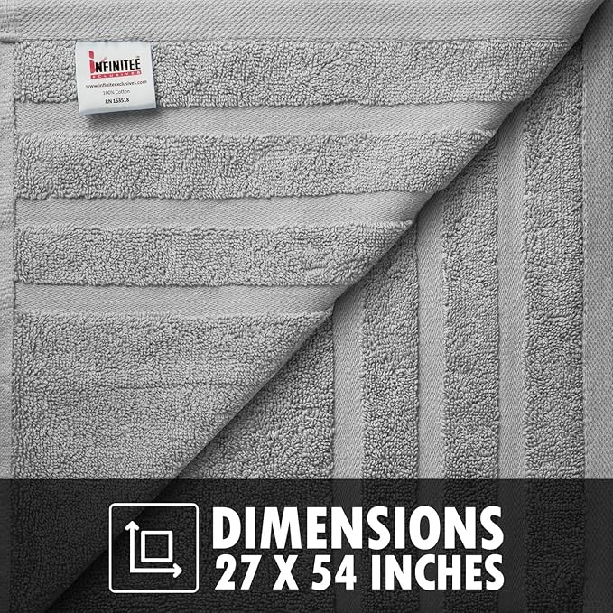 Infinitee Xclusives 100% Cotton Luxury Bath Towels Set of 2 (27x54 Inches) (Charming Grey, Bath Towels - Pack 2)