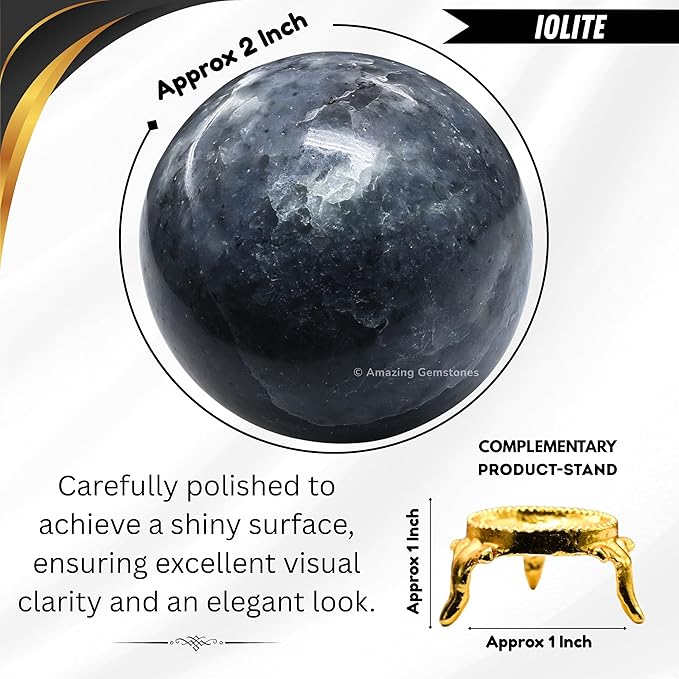 Amazing Gemstone Iolite Crystal Ball with Stand - 2 Inches Crystal Sphere Meditation Balls for Witchcraft and Decorative Balls