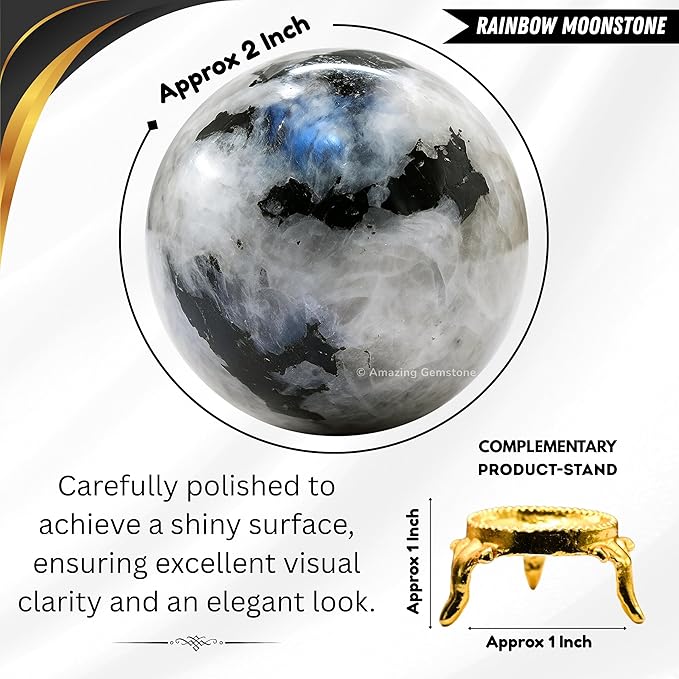 • Natural - Crystal Spheres are made of authentic rainbow moonstone Crystals and Crystal Sphere Stand is made of brass.