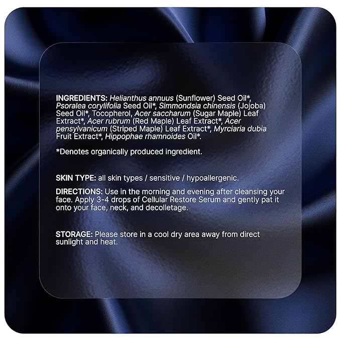 • CLEAN BOTANICAL FORMULA: Cellular Restore features pure babchi oil organic for skin, Vitamin E, and Red Maple extracts in a gentle, plant-based formula suitable for sensitive skin types seeking effective anti-aging care.