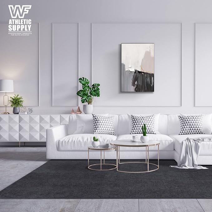 • ⏹ Durable Cushion and Multiple Uses - Each foam floor mats are sturdy enough while providing a cushioned space. The 12mm padding offers a comfortable, shock absorbing surface for fitness routines; Carpet texture provides additional friction. The puzzle piece mat can be cut to fit for custom size. Lay single piece or multiple pieces and it will fit almost anywhere.