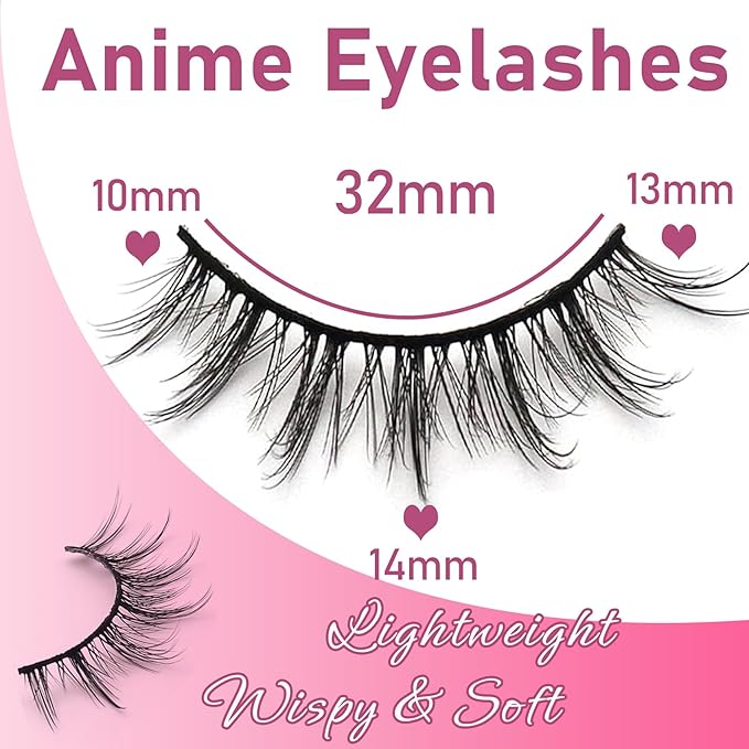 • Flexible Band: Anime eyelashes have flexible super thin cotton band, which are easy to apply and super soft & comfortable. You can wear them to match your daily or gorgeous makeup.