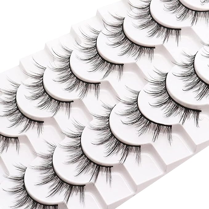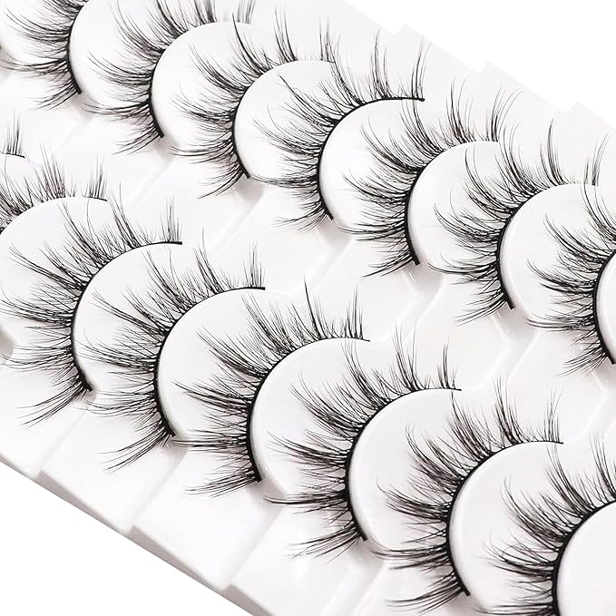 Losha Manga Lashes Fluffy Faux Mink Lashes Natural Look 10 Pairs Asian False Eyelashes Pack Look Like Individual Clusters (6D75)