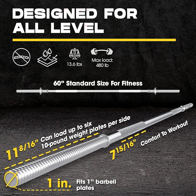 • 💪 UNLEASH YOUR STRENGTH WITH A VERSATILE BARBELL: Elevate your weightlifting experience with the Yes4All Standard Straight Barbell 60-inch/5FT – the go-to bar for bench presses, squats, and more. Crafted for intense workouts, this durable barbell is your key to unlocking strength and muscle gains.