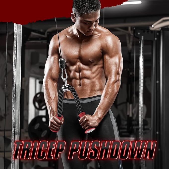 • MULTI USAGE: This rope pull down attachment is ideal for home gym exercises; Just use it with lat pulldown bars, cable crossover, ab machines, and any tricep pulley system to fully develop your triceps and boost shoulder stability
