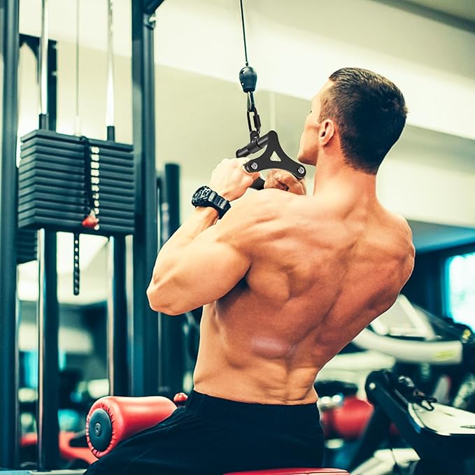 • HEAVY DUTY DOUBLE D ROW HANDLE: Cable Row Handle with a triangular design, more stability, adding high-quality aluminum bar, light weight, strength, can support 550 pounds.