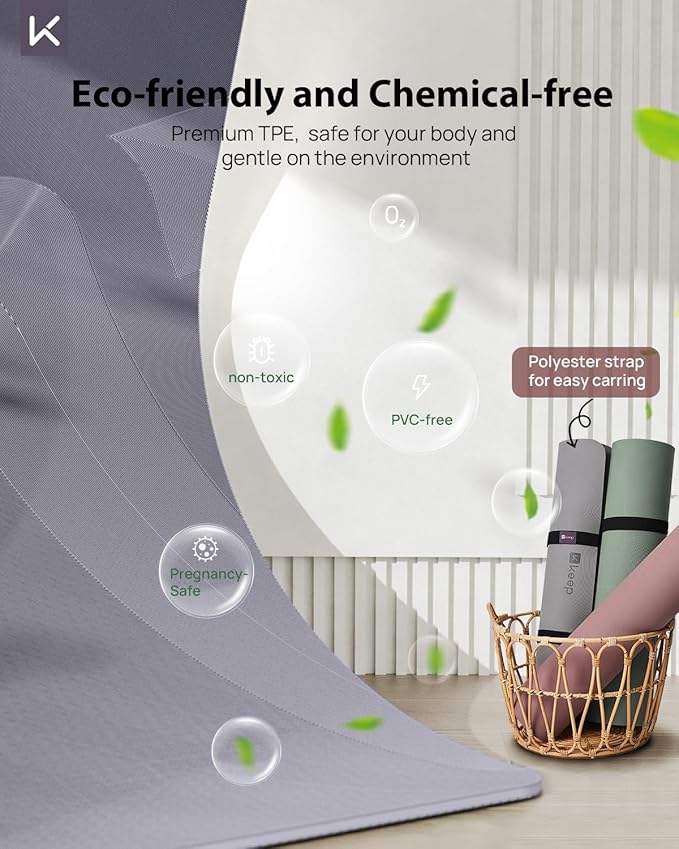 • Planet-friendly Comfort for Body and Mind -- Crafted from premium TPE, making it both eco-friendly and chemical-free. This yoga mat is free from plasticizers and formamide, ensuring it's safe for your body and gentle on the environment. Not only offers superior cushioning and grip but also ensures durability and long-lasting performance