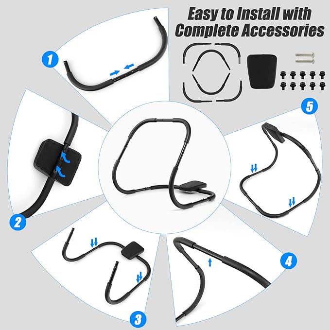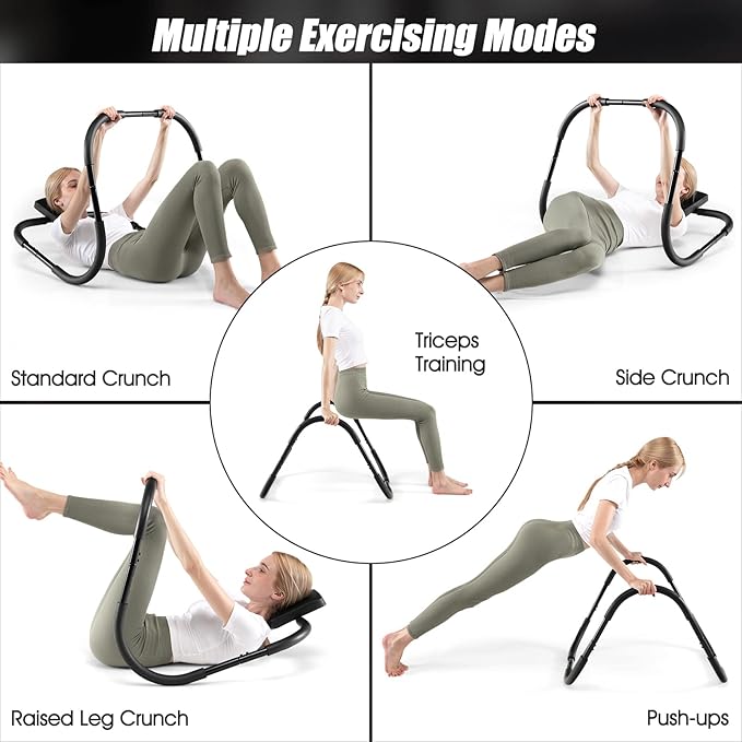 • 【Premium Material & Solid Structure】This AB cruncher is constructed with high quality steel frame, which features great sturdiness and excellent lifespan. With triangular structure, the sit up assistant holds up to 220lbs. Moreover, the firm connections between each part ensure overall stability safety.