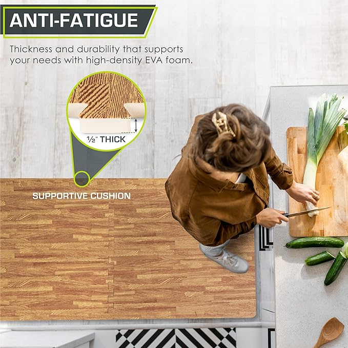 ProsourceFit Wood Grain Puzzle Mat 1/2-in, 6 EVA Foam Interlocking Floor Tiles (24SQ FT) for Secure Indoor Room Workout Flooring and Playmat, Dark Oak