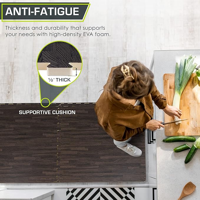 ProsourceFit Wood Grain Puzzle Mat 1/2-in, 6 EVA Foam Interlocking Floor Tiles (24SQ FT) for Secure Indoor Room Workout Flooring and Playmat, Dark Oak