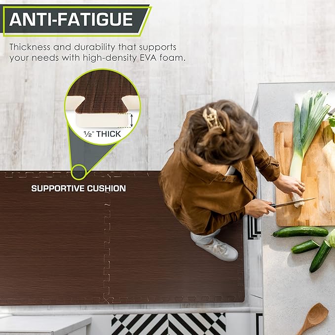 ProsourceFit Wood Grain Puzzle Mat 1/2-in, 6 EVA Foam Interlocking Floor Tiles (24SQ FT) for Secure Indoor Room Workout Flooring and Playmat, Dark Oak