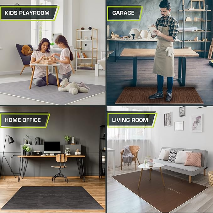 • AESTHETIC LOOK- Compliments indoor spaces like your home, office room or gym set up with a complete, wood grain floor look