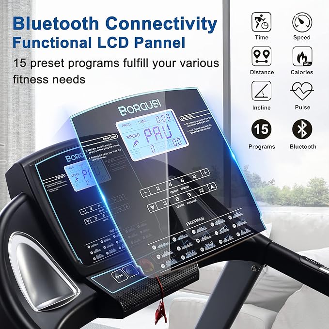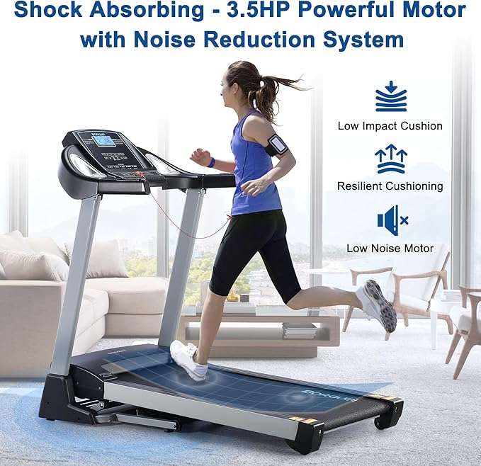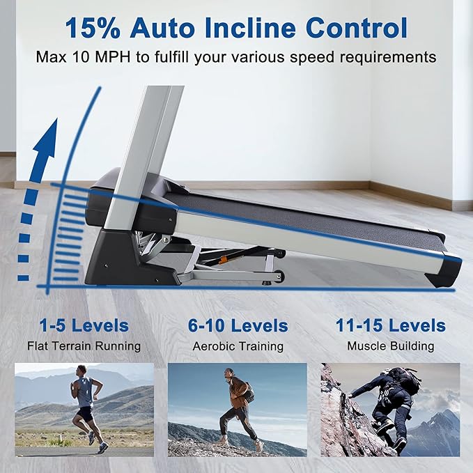 • Versatile Performance: With a powerful 3.5 HP motor, this treadmill offers speeds up to 10 MPH and a 0-15% auto-incline range, catering to various workout intensities from walking to advanced running.