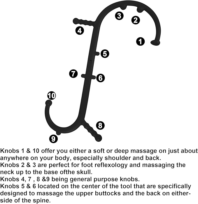 • 10 Massage Knobs: This highly durable and stable massager rod has 10 massage knobs with 3 types - the acorn shape for deep tissue, round for gliding over larger muscle groups, and nub for the lower back. pinpoint the pressure points throughout your body, when pressed against various trigger points or pressure points throughout the body, can provide rapid relief