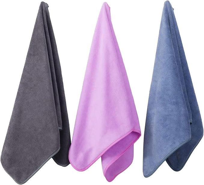 Microfiber Gym Towels Bigger Size Super Soft for Exercise Fitness, Sports, Workout, 380-GSM 15-Inch x 31-Inch Quick-Drying Towels (3 Pack, Pure Grey+Blue+Purple)