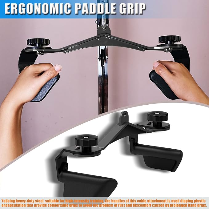 • 【Build Muscles Effectively】With our cable machine accessories, you can train your muscles from multiple angles. The ergonomic paddle grip is perfect for upper back and chest workout.