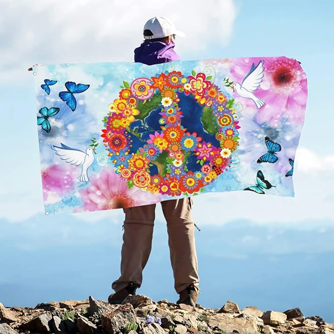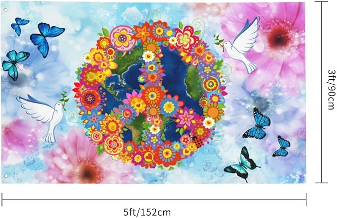 Love Peace Flower Flag 3x5 Ft Outdoor Indoor World Peace Flags Garden Yard Banner Outside Decorative Sign