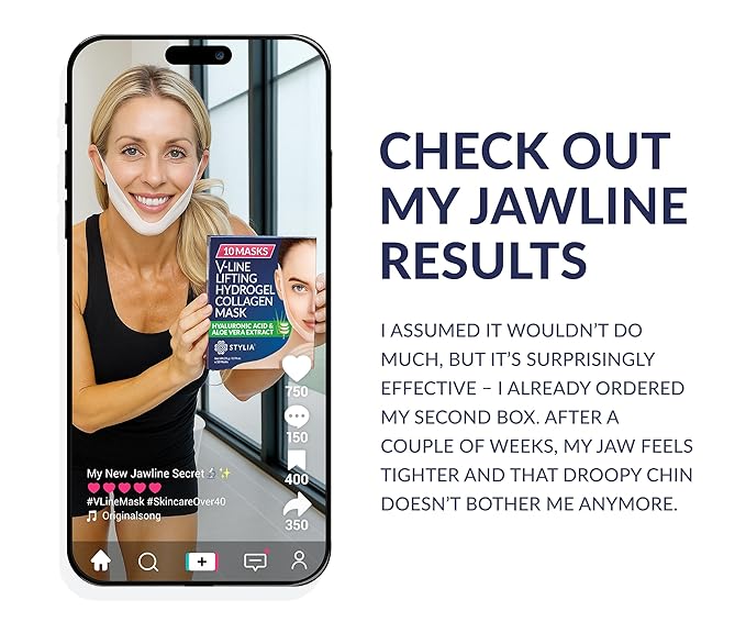 • DOUBLE CHIN REDUCER: Infused with Hyaluronic Acid, Aloe Vera, and Cica. Our Collagen Mask targets the jawline, promoting enhanced definition for a sharper, more sculpted look. Experience the confidence of a slim, youthful face without invasive procedures.