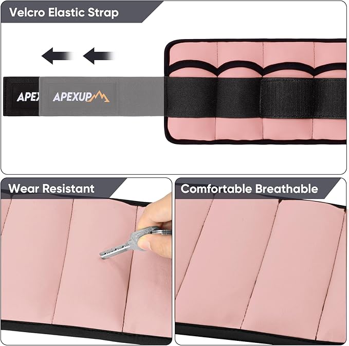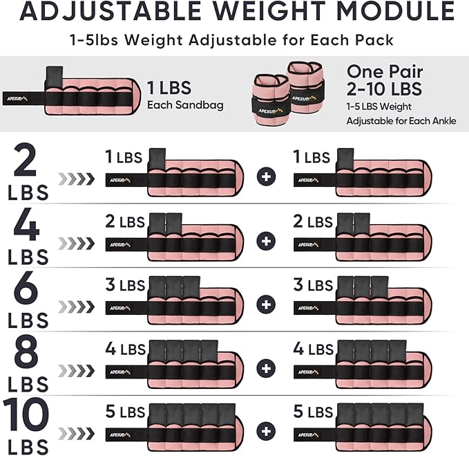 • [PREMIUM QUALITY] APEXUP adjustable ankle strength training weights are filled with iron sand to ensure a compact profile. The sleeve material of the ankle weights for men is soft and breathable, which will give you maximum comfort during workout.