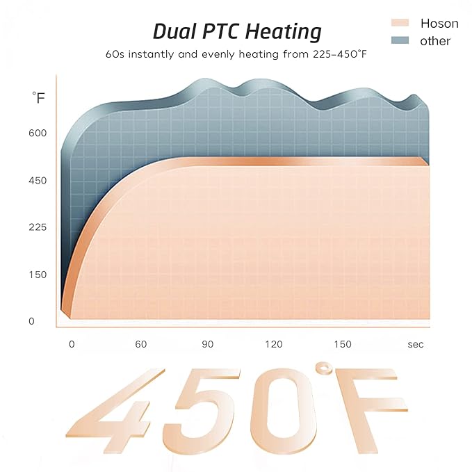 • 60S FAST& EVENLY HEAT-UP HAIR IRON: Tired of always long-hour waiting? The curling iron with Dual PTC heater inside, button on, the iron will rapidly heats up to 225°F in only 60s for instant styling. The barrel also provides heat evenly with less hair damage effectively.